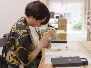 伝統的な日本画の技法をベースに、現代の日本画を模索しています。 和紙、墨、泥絵具、岩絵具などを使って制作しています。